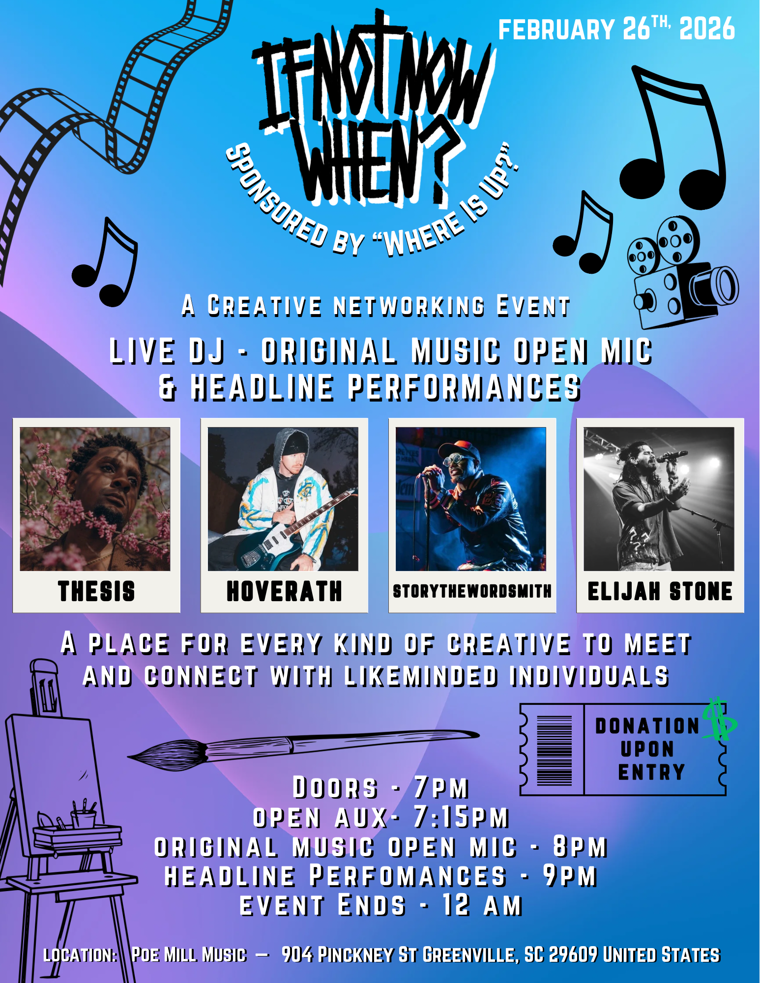 Poe Mill Music is hosting a Creative Network Event! Thursday, February 26th at Poe Mill Music from 7pm til 12am, there will be a gathering of all creative types: Musicians, Producers, Photo/Videographers, Actors, Directors, Models, Influencers, Dancers, Entrepreneurs and more. The goal to get every creative person in Greenville in 1 room to inspire growth, […]