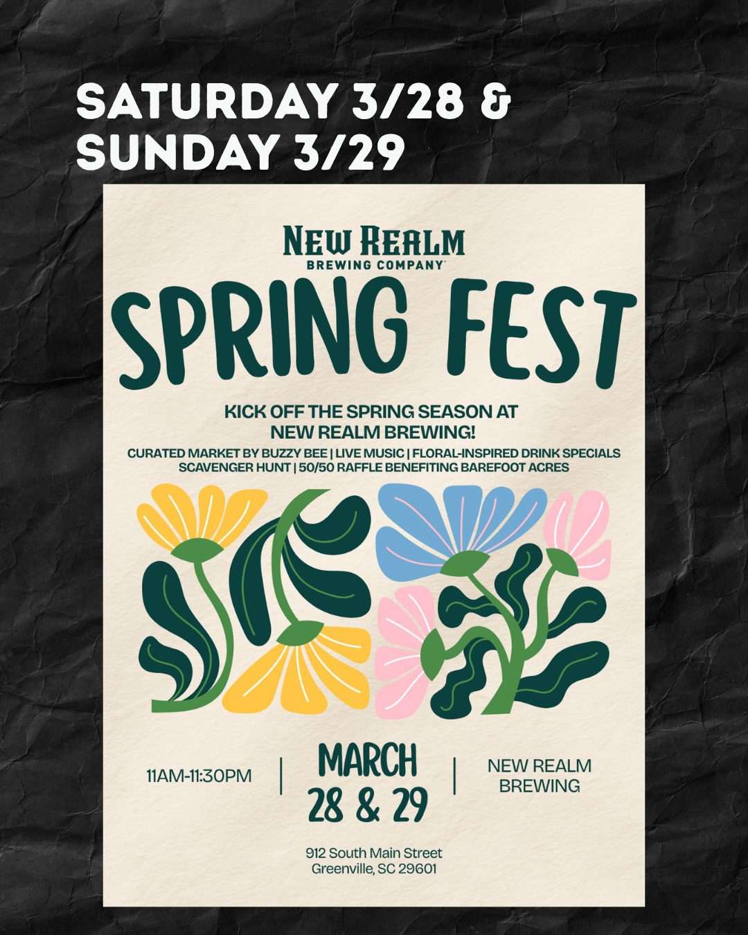 Join the brewery & Buzzy Bee Market as they celebrate the spring season this Saturday & Sunday! Featuring a curated local market, live music, floral-inspired drinks, a scavenger hunt, 50/50 raffle benefiting Barefoot Acres and more.